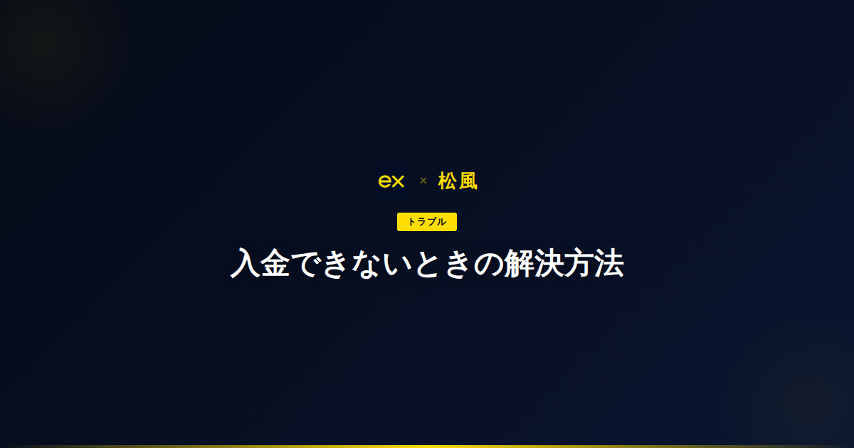 Exnessに入金できない原因は、ほとんどの場合KYC未完了・カード会社の拒否・名義不一致・最低入金額未満のいずれかです。Exness側のシステム障害で入金できないケースは極めて稀で、原因の9割はユーザー側の設定や手続きにあります。